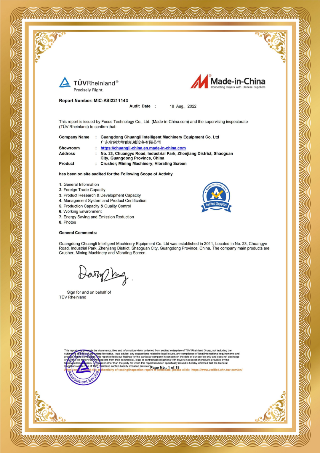 經(jīng)過TüV國際機構(gòu)的實地審核,中國創(chuàng)力的銷售貿(mào)易能力和產(chǎn)品設(shè)計開發(fā)能力、體系和產(chǎn)品認證、生產(chǎn)能力和質(zhì)量管理、實景照片等內(nèi)容得到TüV國際機構(gòu)認證。